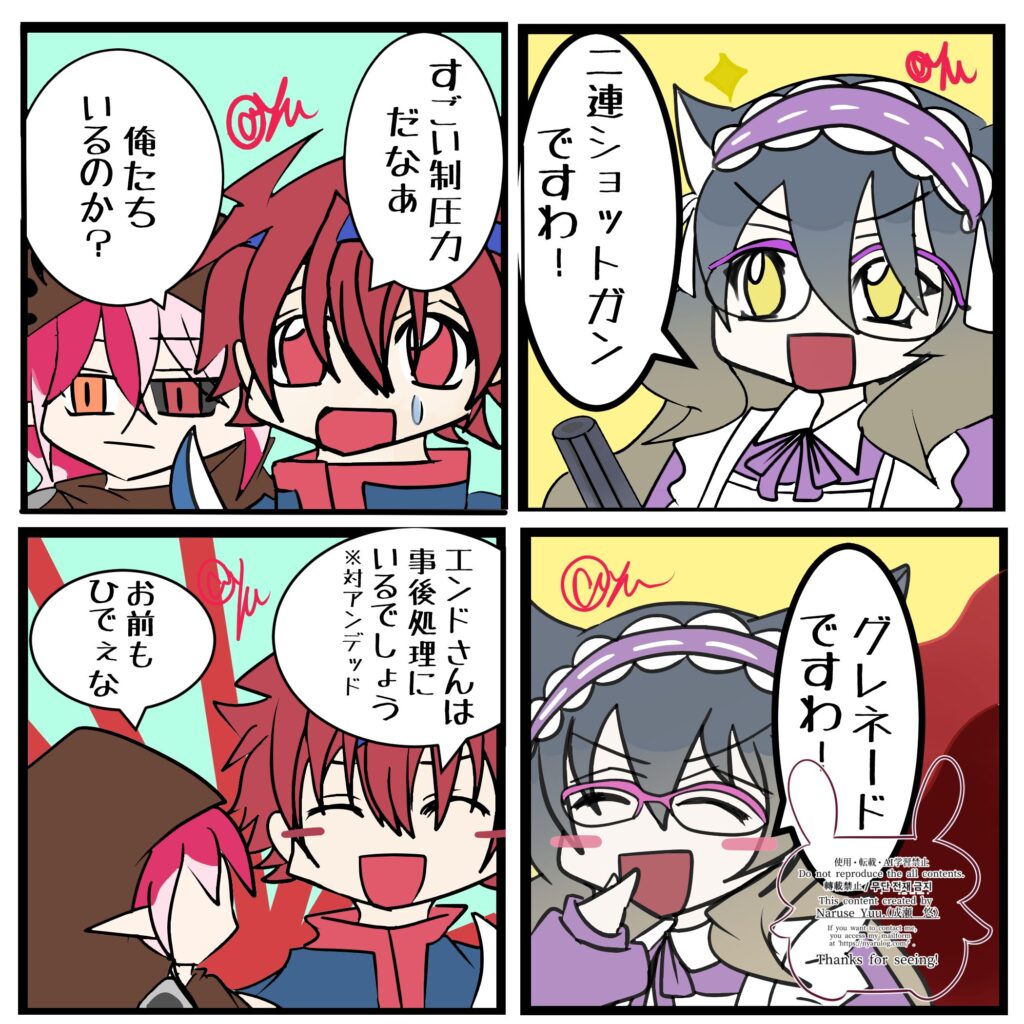 みんなガソリン 2025 2/23 TRPG イラスト キャラクター 2025年2月23日2026年1月4日 ソードワールド2.5の身内卓のメンバーで四コマ漫画です。 良くも悪くも、シラヒメ君は天然。 面白かった!好き拍手!これからもがんばって! メッセージ TRPG イラスト キャラクター SW2.5 TRPG イラスト URLをコピーしました! 感想を追加しました シナリオを追加しました この記事を書いた人 成瀬 悠 第三のサイトの管理人。 こちらでは、TRPGとフリーゲームを扱っています。 関連記事 そしてまた 2025年12月28日 ヤグルマ・エンザ 2025年12月14日 ルリトウ・ヴァン・セルン 2025年12月14日 リュウゼツ・ラセン 2025年12月14日 カタクリ 2025年12月14日 ヒガン・エンザ 2025年12月14日 シラヒメ・エンザ 2025年12月14日 恋とはいまだ 2025年12月14日